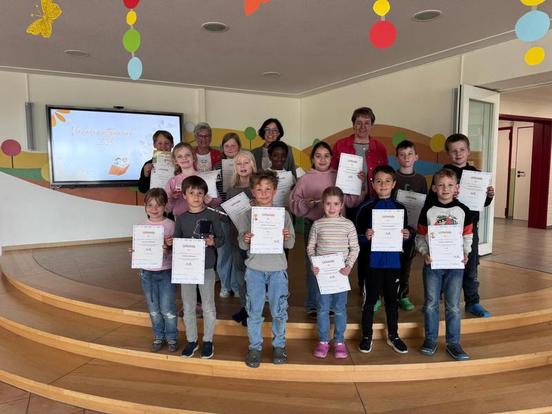 Am 27.05.2025 fand dann der Schulentscheid statt, bei dem die Klassensieger ihr Können unter Beweis stellen mussten: Neben einem geübten Text musste auch ein unbekannter Text vorgetragen werden. Die fachkundige und erfahrene Jury, bestehend aus Annelie Lausch, Anneliese gr. Schlarmann und Christiane Westermann, hatte angesichts der tollen Leseleistungen der Kinder keine leichte Aufgabe.