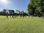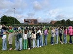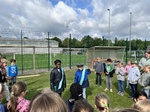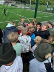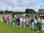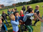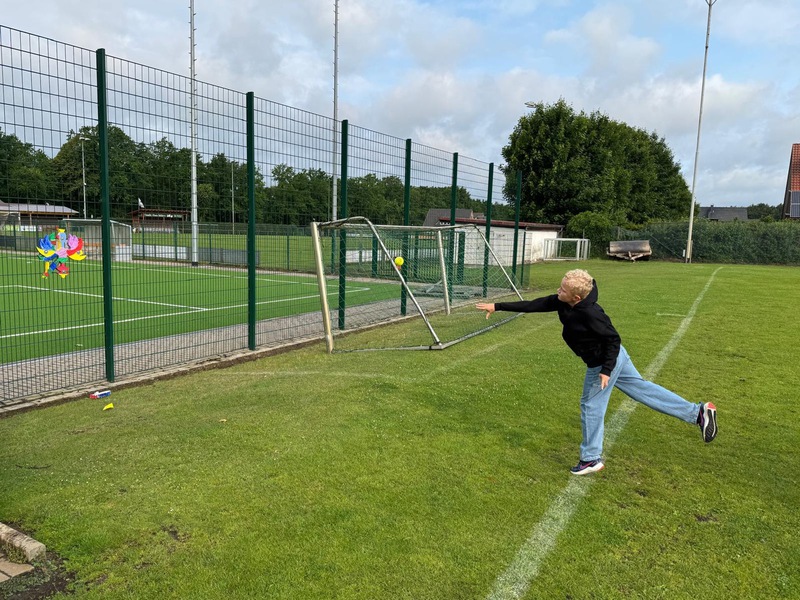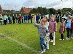 Passend zum Eröffnungspiel der deutschen Nationalmannschaft bei der Fußball EM, fand am Freitag, dem 14.06 das Grundschulfestival zur Euro 2024 statt. In Zusammenarbeit mit dem Sportverein Handorf-Langenberg konnten die Kinder an vier Stationen verschiedene Übungen mit dem Ball ausprobieren. Im Voraus hatten alle Kinder ein weißes T-Shirt mitgebracht und dies mit ihren Teamkollegen gemeinsam gestaltet.