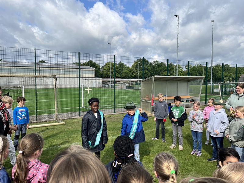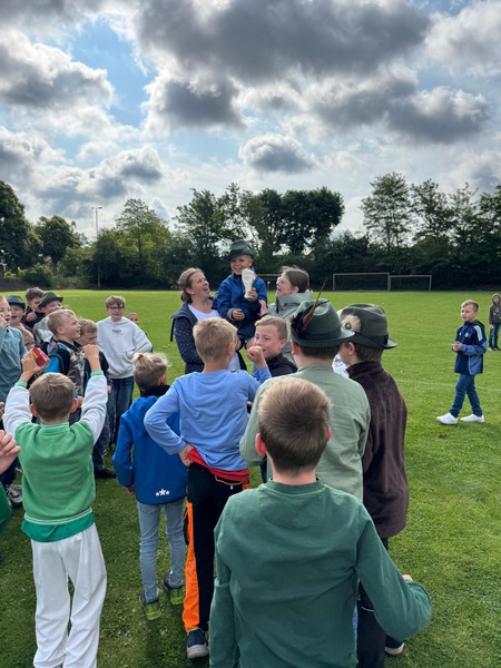Den Auftakt der Feierlichkeiten bildete das traditionelle Adlerschießen, bei dem die Kinder mit großer Begeisterung um den Titel des Schulschützenkönigs und der Schulschützenkönigin wetteiferten. Mit viel Geschick, Teamgeist und Applaus der Mitschülerinnen und Mitschüler gelang es schließlich, Lio Diesen (Klasse 2b) und Abebi Witte (Klasse 4a) die majestätische Figur von der Stange zu holen.