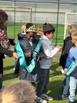 Zum einen wurden die ersten olympischen Teamspiele durchgeführt. Hierbei haben alle Schülerinnen und Schülern gemeinsam mit einem Team die Disziplinen Hindernislauf, Zonenweitsprung, Drunter-und-Drüber Lauf sowie Zonenweitwurf absolviert. Innerhalb eines Teams waren nur Kinder aus demselben Jahrgang. Zum Abschluss fand die Siegerehrung statt, bei der jeweils die goldene, silberne und bronzene Medaille für ein Team aus jedem Jahrgang verliehen wurde. Ein großer Dank geht dabei an Frau Schröer, die die olympischen Teamspiele ins Leben gerufen und organisiert hatte.