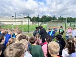 Mit viel Geduld und Fachwissen zeigte Frau Decker, was der tote Winkel eigentlich ist: die Bereiche rund um große Fahrzeuge, wie zum Beispiel LKWs oder Busse, die der Fahrer trotz Spiegeln nicht sehen kann. Besonders eindrucksvoll war die praktische Übung mit einem echten LKW, bei der einige Kinder sich in den toten Winkel stellten – und dabei für den Fahrer komplett unsichtbar waren! So konnten alle direkt erleben, wie wichtig es ist, beim Überqueren der Straße oder an Ampeln besonders vorsichtig zu sein.