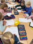 An einer weiteren Station durften die Kinder selbst aktiv werden: Mit viel Geduld und Geschick schnitzten sie ihre eigenen Schreibfedern aus Federn und probierten damit das Schreiben wie in alten Zeiten aus. Die Führung durch das Museum rundete den Besuch ab.